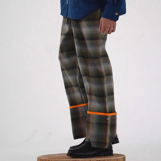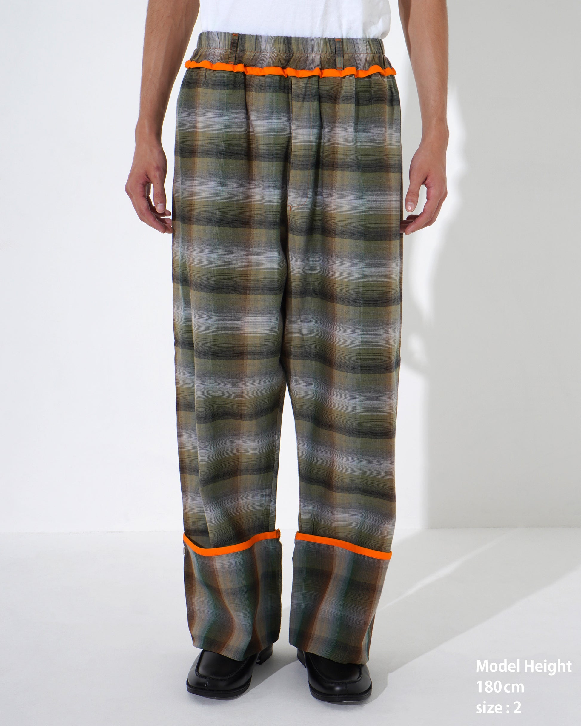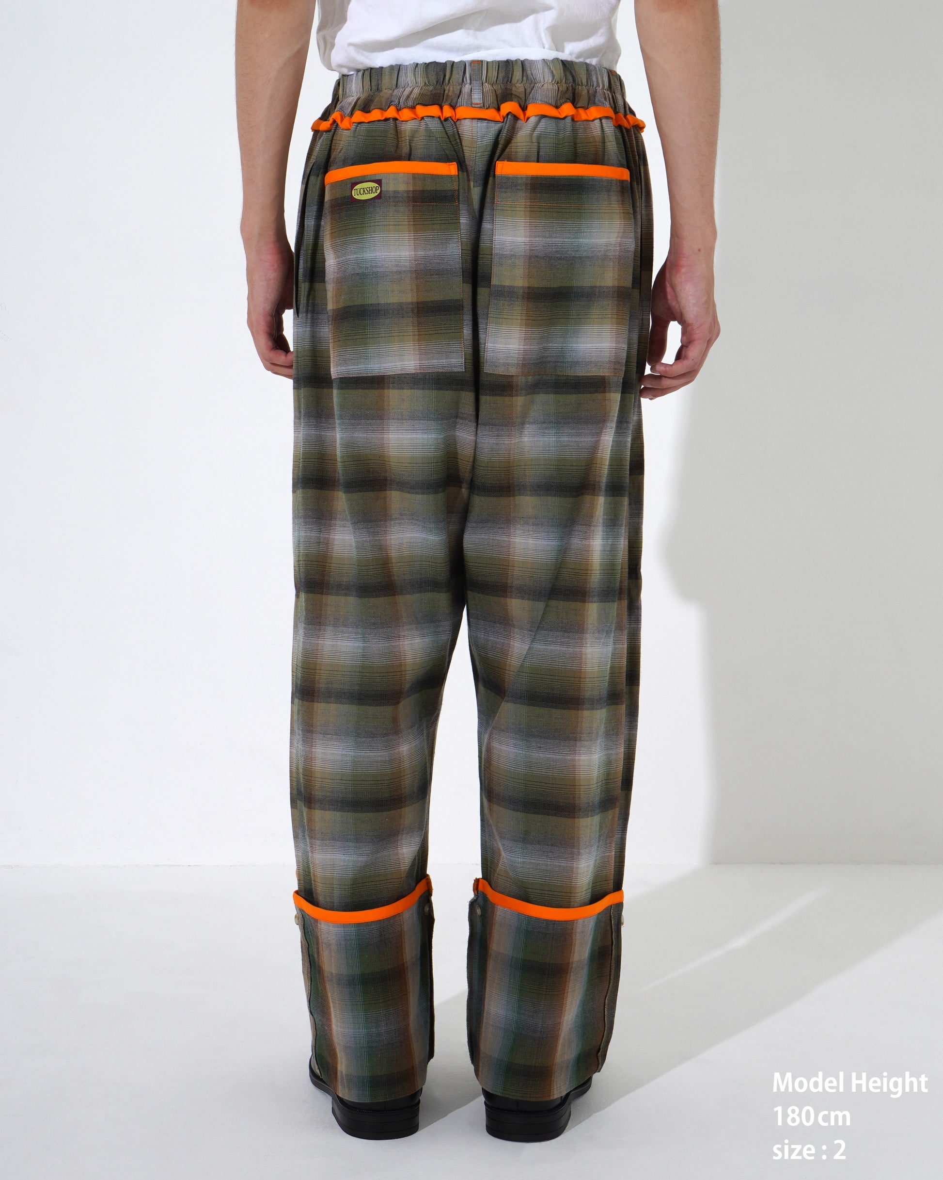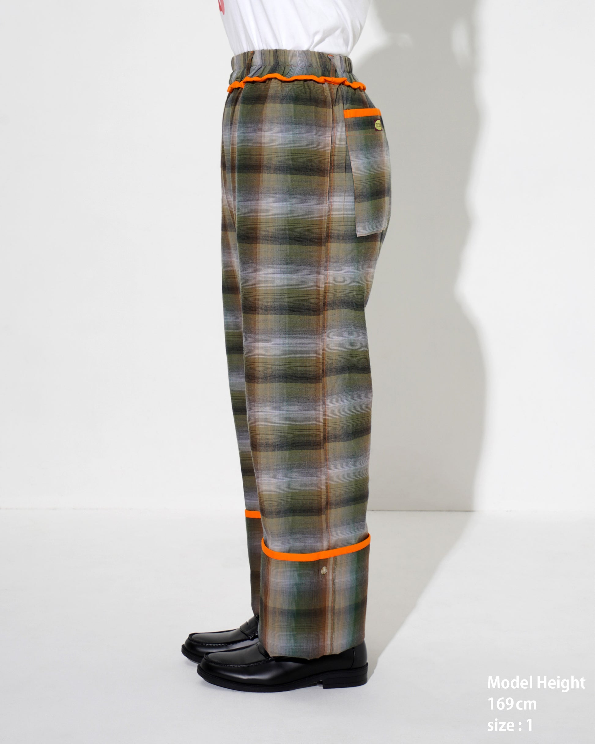 Cotton-Blend Check Easy Pants - Elasticized waist - Two adjustable lengths with buttons at hem - Corrugated piping at waist - Two pockets at side seams and back - Pineapple hem and pocket detailing - Logo patch at rear pocket - Belt loops - Front opening is Belt loops - No front opening