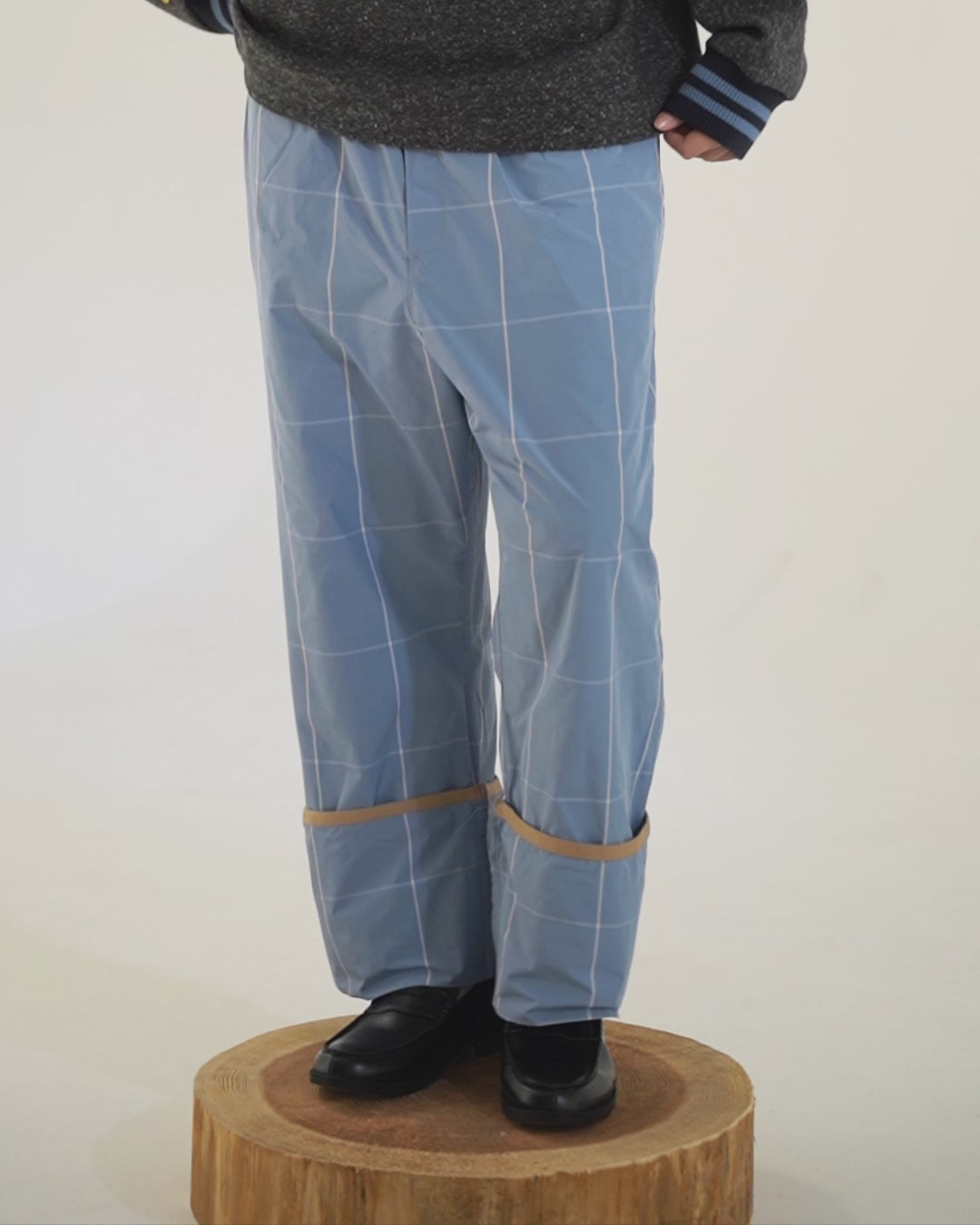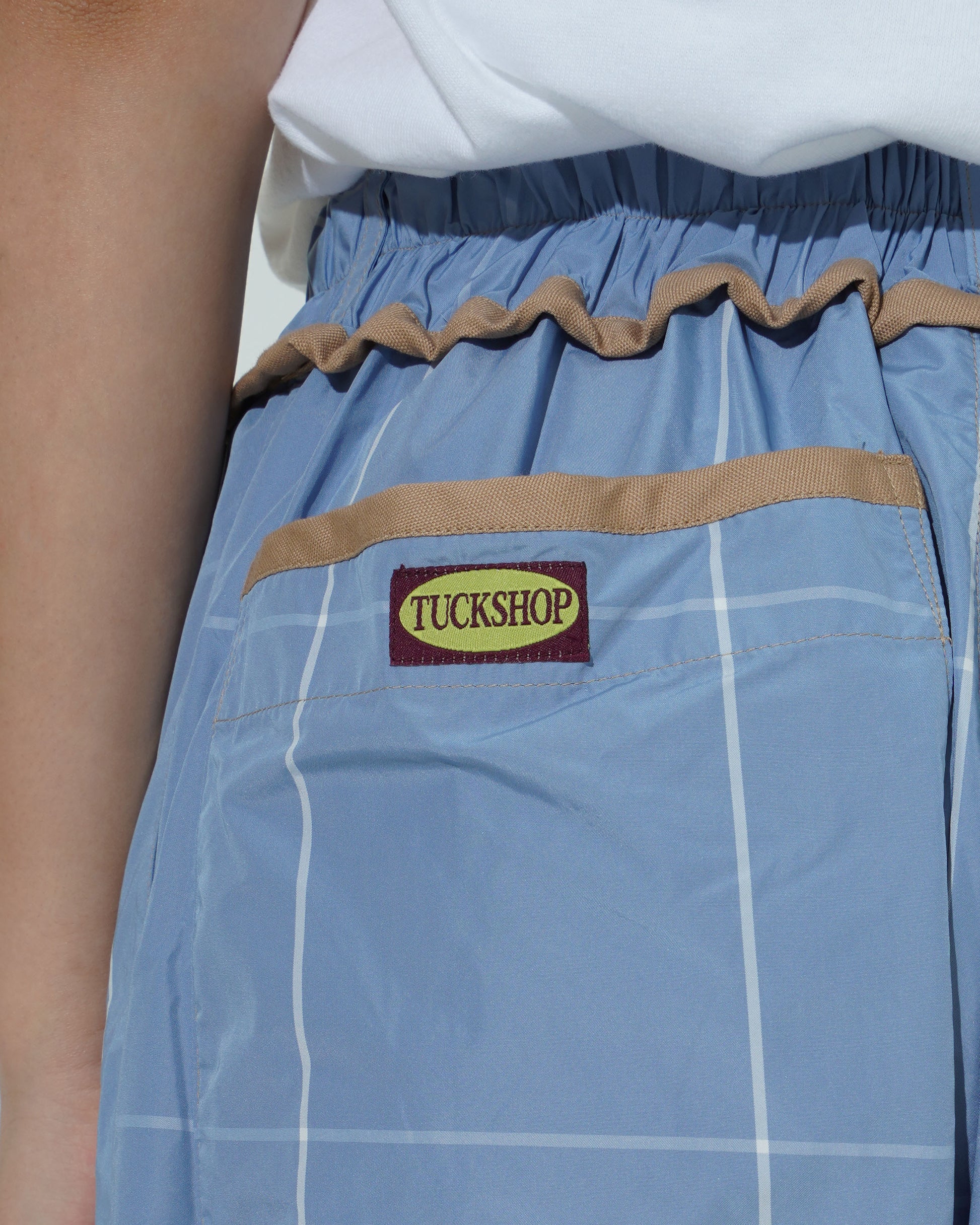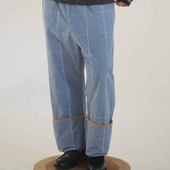 Polyester Check Easy Pants - Elasticized waist - Two adjustable lengths with buttons at hem - Corrugated piping at waist - Two pockets at side seams and back - Pineapple hem and pocket detailing - Logo patch at rear pocket - Belt loops - Front opening is Belt loops - No front opening