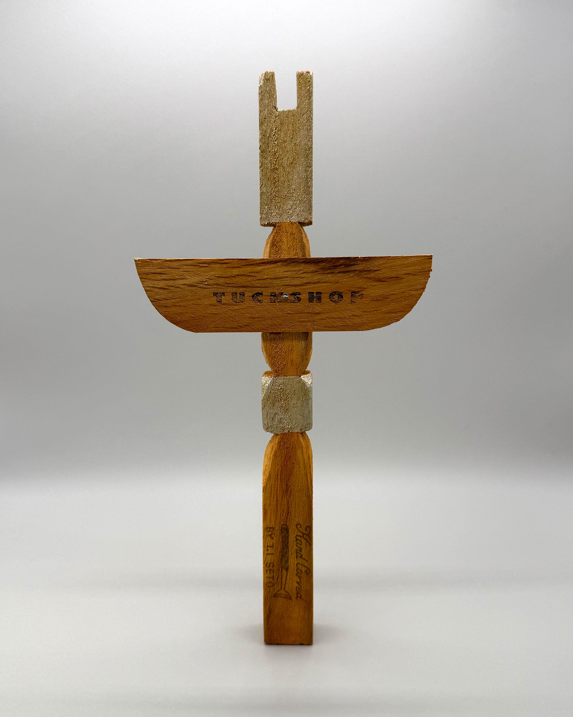 愛知県・瀬戸市で、地元の木材や廃材を使い木彫りの人形を制作する作家 seto totempole souvenirとのカプセルコレクションの木彫りの作品シリーズ。